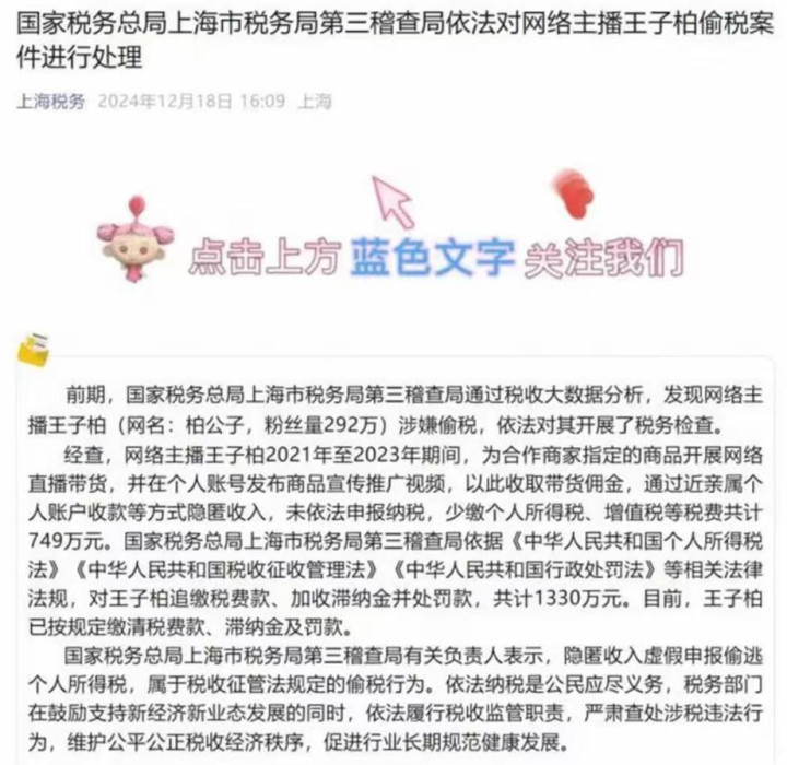 在暴利诱惑下,偷税漏税成为行业“潜规则”,从早期的雪梨、薇娅,到如今的这位转型“公益博主”的炫富者,偷税金额从数千万元到上亿元不等,却仍有人知法犯法。