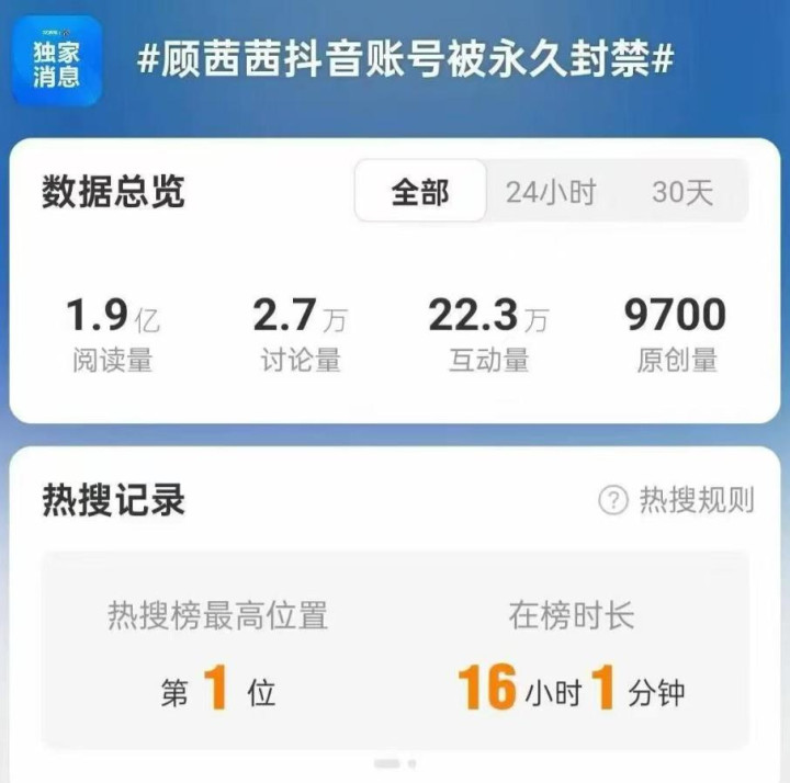 6月21日,该当事人账号因“违反相关规定”被禁言,所有炫富内容均被下架,这场闹剧就此收场。